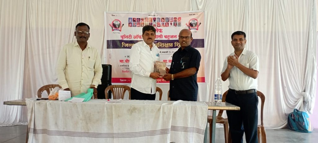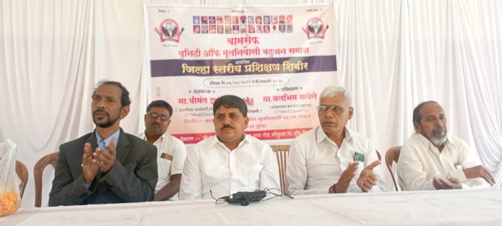 दौंड : बामसेफ एवं युनिट ऑफ मुलनिवासी बहुजन समाज दौंड तालुका युनिट यांनी एक दिवसीय जिल्हा स्तरीय प्रशिक्षण शिबीराचे दि. 7/8/2022 या दिवशी केडगांव चौफुला येथील श्रीकृष्ण मंगल कार्यालय या ठिकाणी आयोजित केले होते. प्रशिक्षणाचे प्रमुख उद्घाटक म्हणून श्रीमंत झुरुंगे साहेब लोणीकंद पुणे हे होते. प्रशिक्षणाचे मार्गदर्शन मा. बलभीम माथेल सर ( प्रदेश अध्यक्ष बामसेफ एवं युनिट ऑफ मुलनिवासी बहुजन समाज महाराष्ट्र राज्य) हे होते. या शिबीराला मार्गदर्शन करताना मा. माथेले सरांनी महापुरुषांनी समाजासाठी पुकारलेला लढा विस्तृत स्वरुपात कार्यकर्त्या समोर मांडला. बुध्दांची करुणा मैञीभाव तसेच पंचशिलाचे पालन का करावे हे सांगितले. सम्राट अशोक चंद्रगुप्त मौर्य यांनी बुध्द धम्माचा केलेला प्रचार प्रसार सांगितला. मंडल आयोग/ कालेलकर आयोग काय होता. त्यात भारतातील समस्त स्ञी वर्गाला त्या आयोगाने मागासवर्गीय मध्ये टाकले होते. नंतर त्या आयोगाचे काय झाले हे ही विस्तृत पणे सांगितले.भारत सरकार ओबीसी ची जातीनिहाय जणगणनना का करत नाही यावर पण त्यांनी प्रकाश टाकला. विश्वरत्न महामानव डॉ. भीमराव रामजी आंबेडकर यांनी ओबीसींच्या आरक्षणासाठी कायदेमंञी पदाचा राजीनामा दिला हे ही सांगितले .मंडल आयोग नेमका काय होता? मंडल आयोग लागू झाल्यानंतर त्यात क्रेमीलिअरची अट कशा पध्दतीने आली? या बाबत ही सविस्तर मांडणी केली .आज पर्यत जे जे आयोग सर्वार्थाने विकास करण्यासाठी नेमल्या गेले तर नेमक्या किती आयोगाची अमलबजावणी करण्यात आली? हा प्रश्न ही उपस्थित करण्यात आला .आज आपण बहुजन समाजातील सर्व जाती धर्माच्या लोकानी एकत्र येवून महापूरूषांच्या जोडणार्या जीवन समृध्द करणार्या विचारधारेचा प्रचार प्रसार करणे काळाची गरज आहे .देशपातळीवर विविध सामाजीक संघटनेतील पदाधीकारी कार्यकर्ते यांनी एकत्र येवून आजच्या स्थीतीत वैचारीक बैठका घेण्याची गरज आहे .लोकशाहीचा प्रतीनीधीत्व हा आत्मा आहे .मग आमचे प्रतीनीधीत्व हे जनगणना केल्याशिवाय त्या प्रमाणात कसे देता येईल हा ही प्रश्न आपल्या समोर आहे .या साठी चिंतन करून एकत्र येण्याचा निर्णय घेणे ही आजची गरज आहे .प्रशिक्षण शिबीर हे सामाजीक कार्य करणारासाठी आवश्यक आहे .या पूढे सातत्याने असे प्रशिक्षण वर्ग राज्यभरात घेतले जाणार आहेत असे प्रतिपादन माथेले यांनी केले . हया कार्यक्रमाचे आयोजन दौंड तालुका बामसेफ एवं युनिटी ऑफ मूलनिवासी बहुजन समाज यांच्या वतीने करण्यात आले होते. या शिबिराला परिसरातील पदाधिकारी कार्यकर्ते मोठ्या संख्येने उपस्थित होते. 85% बहुजन समाजाला प्रतिनिधित्व देताना कोणाचा किती वाटा यावर अनेक प्रश्न सरांनी उपस्थित केले. . पुढे बोलताना ते म्हणाले 85%बहुजन स