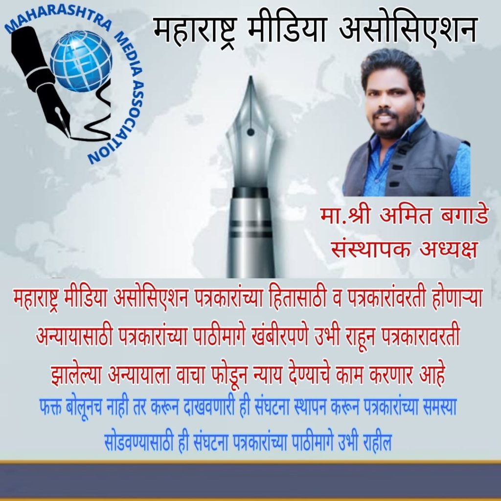 मात्र खरंच त्या संघटनेतून अन्यायग्रस्त पत्रकारांसाठी काही केले जाते? आपण पाहत असतो की गल्लीपासून ते दिल्लीपर्यंत क्षणाक्षणाची अपडेट ठेवणारा मीडिया म्हणून डिजिटल मीडिया कडे पाहिले जाते. मात्र या डिजिटल मीडिया च्या पत्रकारांसाठी विधान भवन, संसद भवन येथे कोणताही आमदार खासदार कधीही बोलताना दिसत नाही. सर्वसामान्य घरातील निर्भिड लेखणी करणारे डिजिटल मिडियातील पत्रकारांसाठी त्यांचा आवाज विधान भवन,संसद भवन पर्यंत पोचवण्याचे काम महाराष्ट्र मीडिया असोसिएशनच्या वतीने करण्यात येणार आहे. अशी माहिती संस्थापक अध्यक्ष अमित बागडे यांनी दिली.