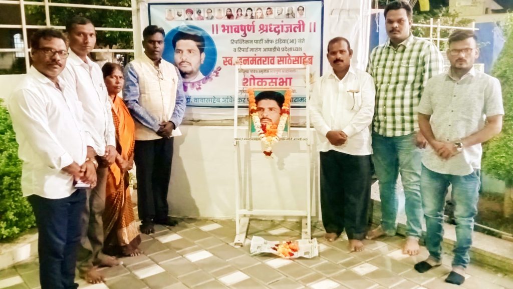दिवंगत नेते हनुमंत साठे यांच्या निधना झाल्याने रिपब्लिकन पक्षाच्या वतीने येथील आयोजन डॉ. बाबासाहेब आंबेडकर पुतळा स्मारक या ठिकाणी शोकसभेचे आयोजन करण्यात आले होते.