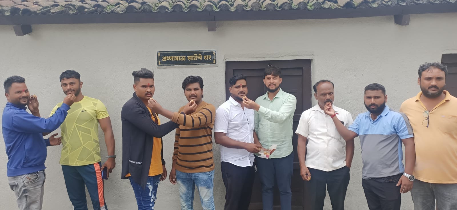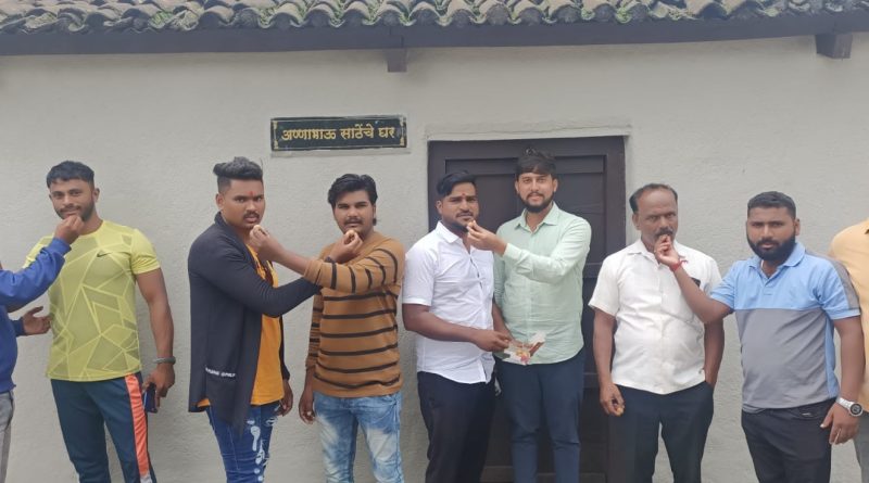 बारामती: जगविख्यात साहित्यिक लोकशाहीर आण्णा भाऊ साठे यांच्या पुतळ्याचे लोकार्पण व तैलचित्राचे अनावरण रशिया या देशांमध्ये झाले ही बाब तमाम भारतीयांसाठी आनंदाची, व अभिमानाची आहे . त्यामुळे बारामती येथिल युवकांनी आण्णा भाऊ साठे यांची जन्मभूमि आसलेले वाटेगाव या ठिकाणी समाजिक कार्यकर्ते अभिषेक खरात .जय लहुजी फ्रेंन्ड सर्कलचे अध्यक्ष केदार भाऊ पाटोळे. परिवर्तन सोशल फाऊंडेशन चे अध्यक्ष बबलु भाई शेख. सनि दुर्वे. आदित्य भोसले. यांनी तेथे जाऊन त्यांच्या स्मारकास आभिवादन करुन एकमेकांना पेढे मिठाई भरवत आनंद उत्सव साजरा केला.