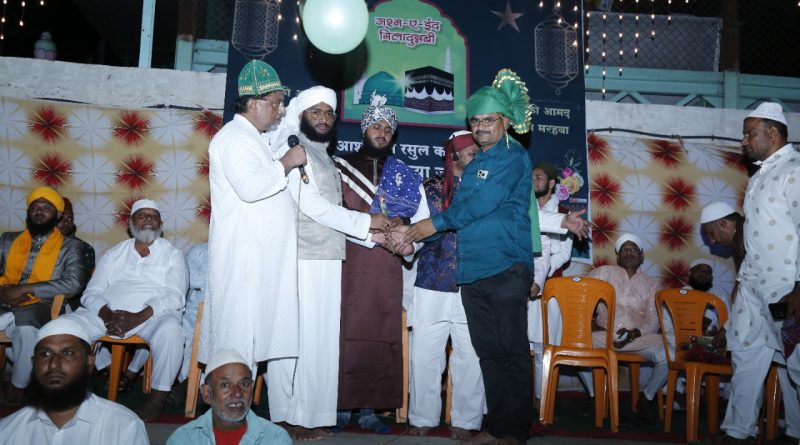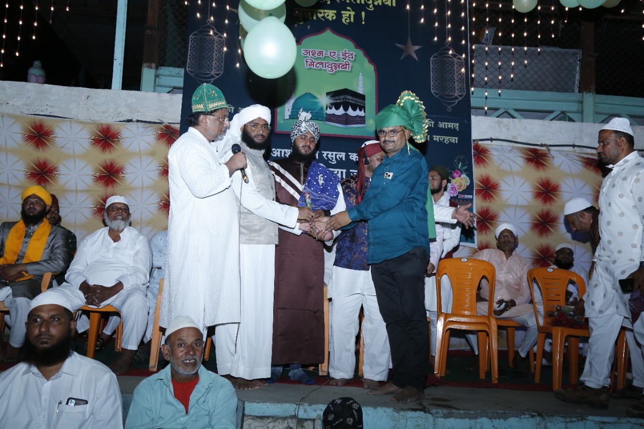 सर्व धर्म समभाव समितीच्या वतीने याही वर्षी कोणत्याही प्रकारचे डी.जे. न लावता पारंपारीक पध्दतीने कुराणचे पठन करून पैगंबर जयंती साजरी करण्यात आली. यावेळी अनोख्या पध्दतीने व डि.जे. ला फाटा देऊन पैगंबर जयंती साजरी केल्यामुळे पैगंबर जयंती उत्सव समितीच्या वतीने आयोजक श्री. गणेश (काका) जोजारे व प्रतिक गणेश जोजारे यांचा सत्कार करण्यात आला. सदरवेळी मोईनभाई शेख – अध्यक्ष, चैतन्य भैय्या गालिंदे – उपाध्यक्ष उपस्थित होते. व सर्व धर्म समभाव समितीचे सर्व सदस्य उपस्थित होते.