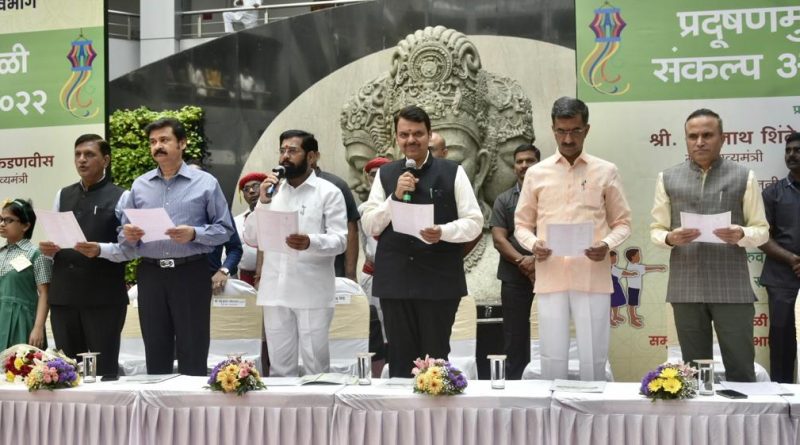 वातावरणीय बदलांचे दुष्परिणाम सर्वत्र जाणवत आहेत. यामुळे पर्यावरण रक्षणाची आवश्यकता लक्षात घेऊन प्रदूषणमुक्त दिवाळी साजरी करण्यासाठी शासनाने पुढाकार घेतला आहे. या अनुषंगाने मुख्यमंत्री एकनाथ शिंदे यांनी प्रदूषण मुक्त दिवाळी संकल्प अभियान 2022 अंतर्गत प्रदूषणमुक्त दिवाळीची शपथ दिली. उपमुख्यमंत्री देवेंद्र फडणवीस, शालेय शिक्षण मंत्री दीपक केसरकर, सहकार मंत्री अतुल सावे, राज्य उत्पादन शुल्क मंत्री शंभुराज देसाई, मुख्य सचिव मनुकमार श्रीवास्तव, पर्यावरण व वातावरणीय बदल विभागाचे सचिव प्रवीण दराडे, प्रदूषण नियंत्रण मंडळाचे अध्यक्ष आबासाहेब जऱ्हाड यांच्यासह मुंबई महानगरपालिकेच्या घाटकोपर आणि कुलाबा येथील शाळेतील तसेच कमला मेहता अंध विद्यालयातील दिव्यांग विद्यार्थी यावेळी प्रातिनिधिक स्वरूपात उपस्थित होते. महाराष्ट्र प्रदूषण नियंत्रण मंडळ आणि शासनाचा पर्यावरण व वातावरणीय बदल विभागाच्या संयुक्त विद्यमाने या कार्यक्रमाचे आयोजन करण्यात आले.