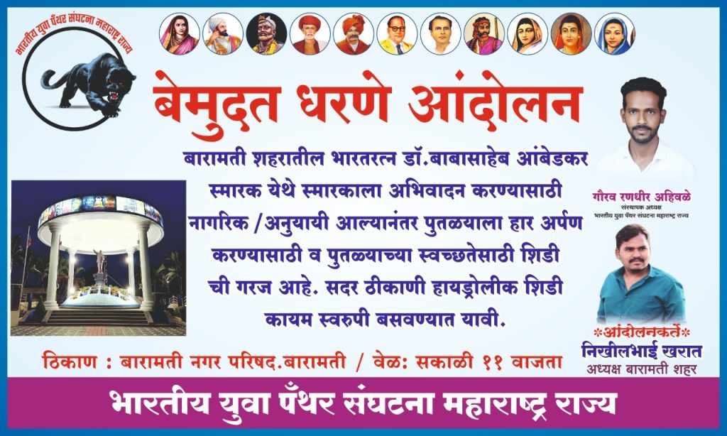 बारामती : आज भारतीय युवा पँथर संघटनेचे बारामती नगरपरिषद समोर धरणे आंदोलन सुरू केले होते.