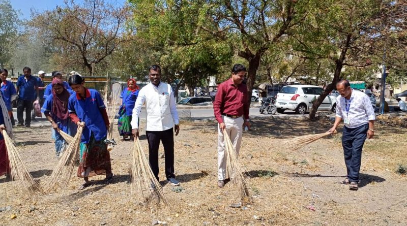बारामती : संत गाडगेबाबा यांच्या विचारांना सफाई कामगार पुढे घेऊन जात आहेत म्हणून कामगारांना सन्मानित करून त्यांच्या कार्याची कृतज्ञता व्यक्त करून जयंती साजरी करूया.असे आव्हान माजी नगरसेवक प्रा.रमेश मोरे यांनी केले बारामती नगरपालिकेच्या वतीने संत गाडगेबाबा जयंती निमित्त पानगल्ली, मुजावर वाडा या ठिकाणी स्वच्छता अभियान राबविले. याप्रसंगी मुख्य आरोग्य निरीक्षक राजेंद्र सोनवणे ,दुबे साहेब ,सफाई कर्मचारी, स्थानिक रहिवासी बहुसंख्येने उपस्थित होते.