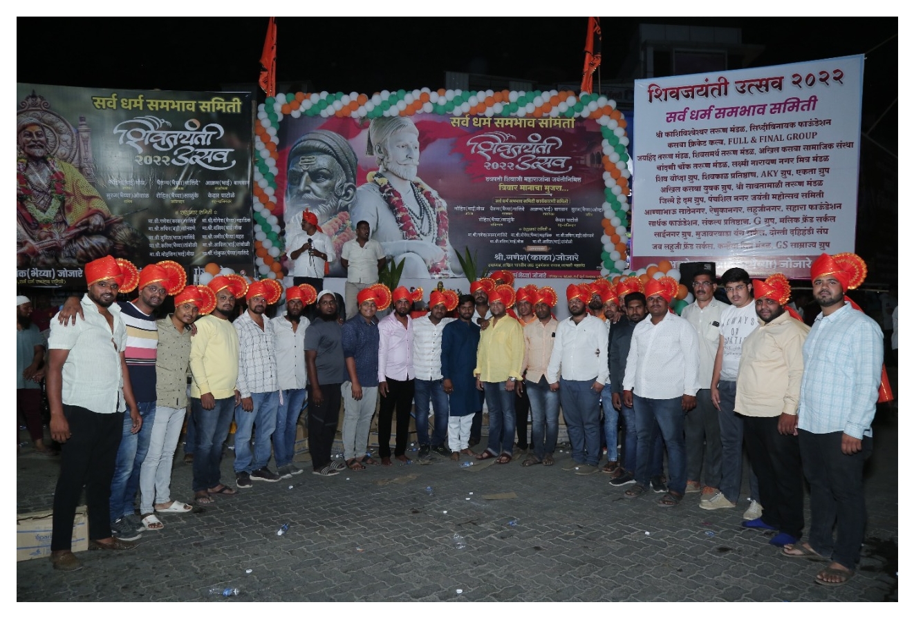 बारामती : प्रतिक जोजारे यांच्या संकल्पनेतुन सर्वधर्म समभाव समिती तर्फे शिवजयंती उत्सवाचे आयोजन केले होते.मान्यवरांच्या हस्ते छत्रपती शिवाजी महाराज यांच्या प्रतिमेस पुष्पहार अर्पण करून अभिवादन करण्यात आले. शिवजयंती निमित्त शिवभक्तांना फेटे बांधले आणि मिरवुकीत सहभागी झालेल्याना बिस्लरी पाणी वाटप करण्यात आले.