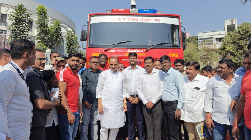 बारामती : महाराष्ट्र अग्निसुरक्षा अभियायाअंतर्गत नगरपरिषदेत नव्याने दाखल होणाऱ्या अत्याधुनिक अग्निशमन वाहनाचे उपमुख्यमंत्री तथा पालकमंत्री अजित पवार यांच्या हस्ते लोकार्पण करण्यात आले.