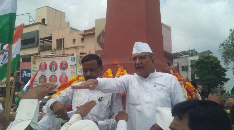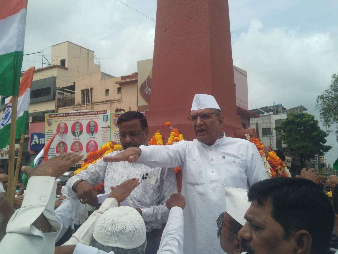 बारामती: येथील हुतात्मा स्तंभाला अभिवादन करून ९ ऑगस्ट क्रांतीदिन बारामतीत साजरा करण्यात आला.